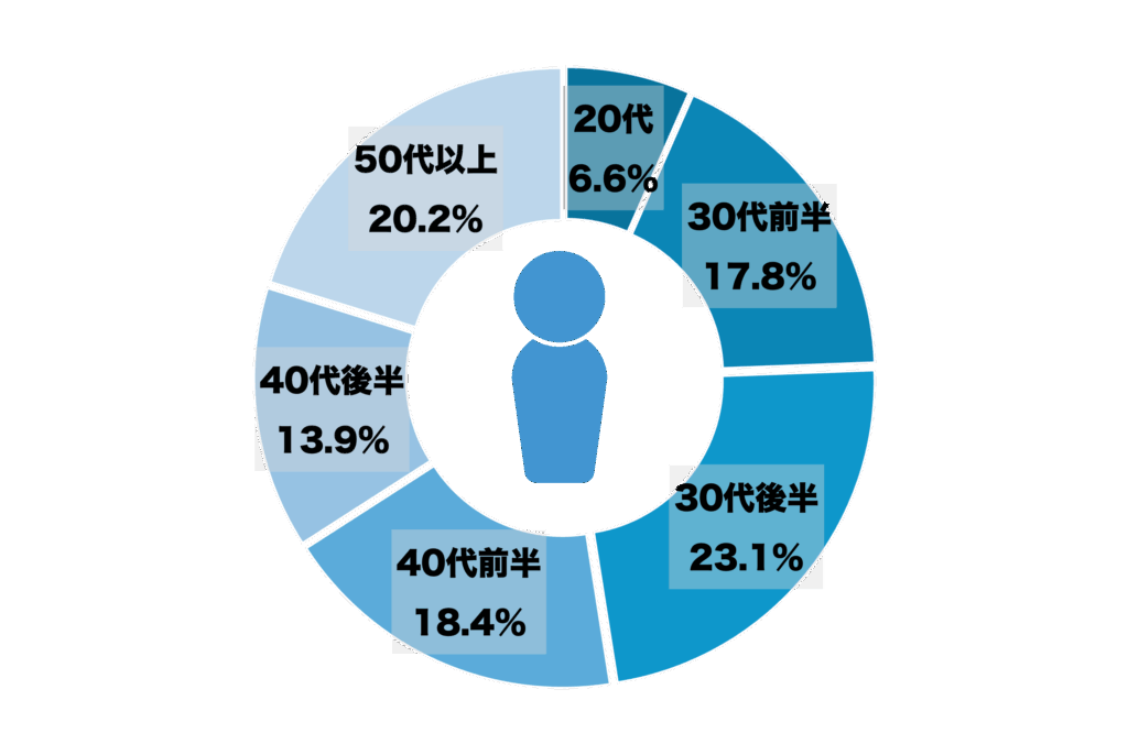 男女ともに30代が中心。結婚適齢期の方が最も多く活動しています。